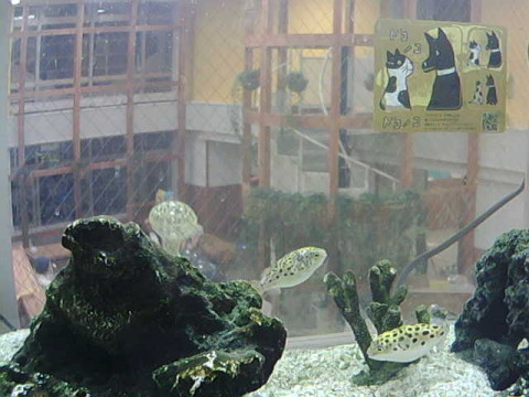 ワークSHOPの様子 -----------------------------------------みなさん、楽しそう〜って、私もフグさんも、羨ましそうに見守ってます! まぁ助----------------------------------------------------------------------------------ほぼにちは。 ちょくちょく眺めては、フグさんたちに癒されています。 たまたま作業中の何かが一緒に写ったのだと思いますが、3匹泳いでいるように見えませんか? まるめろ----------------------------------------------------------------------------------時折来ては楽しんでおります。 が、今まで見たことないようなものが右奥に。 フグさん巨大化?!ではないな!? 色は似てる…ような? 何なのでしょうか? 【そうし】 ----------------------------------------------------------------------------------いつものようにフグさんを 見に行ったら… フグではない 何か?がデデ〜ン! と登場されたので真相をしるためにちょっと 送ってみます やむやむ---------------------------------------------------------------------------------- 今週末は、ほぼ日オフィスで ひびのこづえさんのワークSHOPがありました! ワークSHOPの様子は、こちらからご覧になれます。 募集はすでに終わってしまいましたが、これはかなり楽しそう! ぜひまたTOBICHIでやってもらいたいなあ。 TOBICHIでは今週末まで引き続き、ひびのさんのSHOPを開催中です。 ちなみにみなさんが気になっているカエルの卵は、 TOBICHIページのどこかに正面図が載っています! 探してみてくださいね〜! 2016/07/19 10:21 |