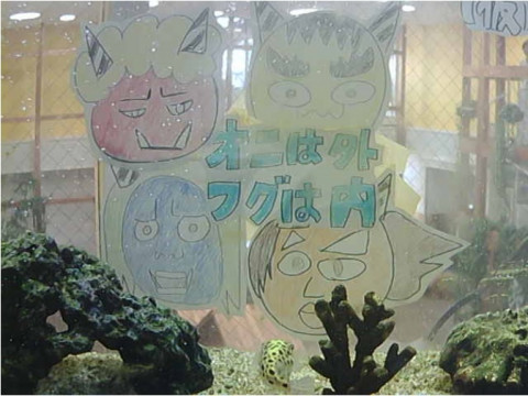 フグは内〜 ------------------------------- こんにちは。 昼休憩を終えて、仕事する前にフグ氏見るか〜と思ってページを開いてみたら…節分の飾り付け真っ最中でした(笑) ほぼ日の乗組員のみなさま、昼休憩明けの憂鬱な気分を、ほんわかした気持ちにさせてくれてありがとうございます。 乗組員さんが飾り付けを終えた数秒後に、フグ氏が 「う〜ん、なかなかいいフグね〜」と節分飾りを眺めていましたよ。 mok ------------------------------- まさに飾り付け中〜 ぼくには2枚めのフグさんが、RPGでラスボスに立ち向う勇者のように見えました。カッコイイ。 (BGMは『ワンダと巨像』) し、しかし、 (仮)が、 (仮)がですね、 (仮)が写りこんだまま... すぐさま気付けずごめんなさい。 みなさん、たくさんのご投稿をありがとうございますー。 2017/02/03 21:00 |