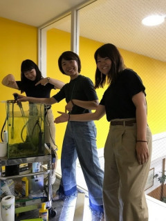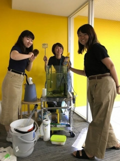 気づけば。。。 9月です! 「ほぼ日手帳2018」の販売も、いよいよスタートしました。 9月になったということは、アルバイトさんのフグリーダー的存在だった ということでもあります。 今週の掃除はどうかなー、と思っていたら、新しく乗組員にお迎えした村山さんも早速掃除に参加してくれました! フグは寒いの苦手だから、みんなでしっかり見ていきましょ! 村山さん、よろしくお願いします! 張り切ってる3人の写真を撮りながら、 「チャーリーズ・エンジェル」 みたいだなー、と言ったら、あいまいな返事が返ってきました。 今までずっとジェネレーションギャップのあちら側にいたつもりだったのが、こちら側に来てたことに気づいた瞬間でした。 2017/09/05 18:48 |