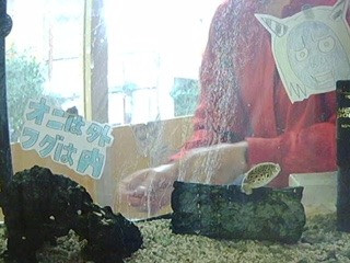 黄色い壁、オニ、手帳Spring こんにちは。 ご無沙汰してしまいました。 いろいろフグ水槽まわりで心配事がつづき、ひかえてしまっていました。すみません。 最近は水も安定してきて、フグさんたちもフヨフヨいつもどおりです。 そんなおり... ーーーーーーーーーーーーーーー 気になるんです…壁ができて…フグさんも覗いてるんです ーーーーーーーーーーーーーーー はい。壁が、できました...。 フグさん水槽のすぐわきにミーティングスペースがあるのですが、ここが、なんというか、その、見えるんですね。足元が。下から。 おそらくそういうことに配慮してくれた総務の方が、壁を設置してくださったもの..と思うのです。 (詳細は明かされていません) そのようなわけで、水槽の位置やカメラを調節したいとは思うのですが、もうしばらくの間、黄色い壁も含めてフグさんをご覧いただけたらと思います。 そして、 ーーーーーーーーーーーーーーー 今年も、オニさんのご登場ですね。 待ってました。 ああっ、『オニは外 フグは内』が、はがれてしまいました。 うちは節分の豆まきはしないので、ここのオニさんたちに節分を思い出させてもらってます。 (も) ーーーーーーーーーーーーーーー あたたかな日曜日にフグさん家をのぞいてみたら、もう鬼さんたちが! いらっしゃる! さて節分の夜の空模様や、如何に? (おにロス) ーーーーーーーーーーーーーーー そう! 節分ですよ! 今年も その、赤い人、スガノ先輩ですね。 いつもありがとうございます。 節分の時期といえば、 ほぼ日手帳Spring版も販売開始されましたので、こちらもよろしくお願いしますね。 北の国からを見始めたワタクシは、やはりキツネが気になります。 ルールルルル.. 2020/02/02 16:02 |