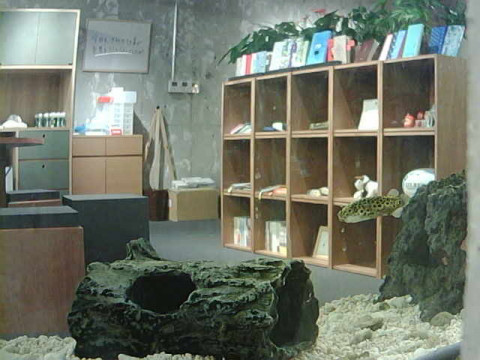 ほぼ日の事務所にあるミドリフグの水槽を写しています。 ミドリフグさんの姿をみるもよし。その先にみえる会議の風景をみるもよし。暇つぶしにいかがですか。