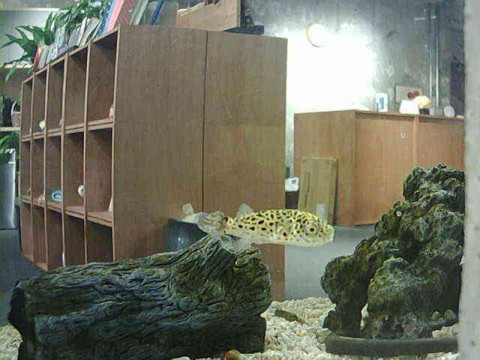 たくさんのメールありがとうございます! 読者のみなさんから水槽を覗き込む乗組員の写真が届いたり、乗組員から「すごくかわいい瞬間!」のメールを受け取ったり。 たくさんメールをいただいています。 変わった水槽の景色を楽しんでいただけて、とてもうれしいです。 ありがとうございます! システムの先輩に相談した結果、カメラが安定したのもうれしいです。 ーーーーーーー 毎日仕事の昼休みに、お弁当のおかずのようにして拝見しております。 神田にオフィスがお引越しされてから、今日初めて、フグ様のお姿を拝見しましたので、やっと安心出来た次第です。 ーーーーーーー ↑↑↑おぉ...お弁当のおかず...この表現は新しいですね。 ちょっと、ドキドキしました。おかず...。 安心いただけてよかったです! こんどぜひ、写真も送ってくださいね。 ーーーーーーー 爽やかなまだら模様。 ーーーーーーー ↑↑↑これだけ鮮やかに写るのもめずらしい! 神田に引越してから、水質がよくなったのかカメラ写りがよくなったのか.. 「本当に水槽あるの?」 というお問い合わせもいただいております。 水槽あります! ありますよ! 2020/12/21 19:05 |