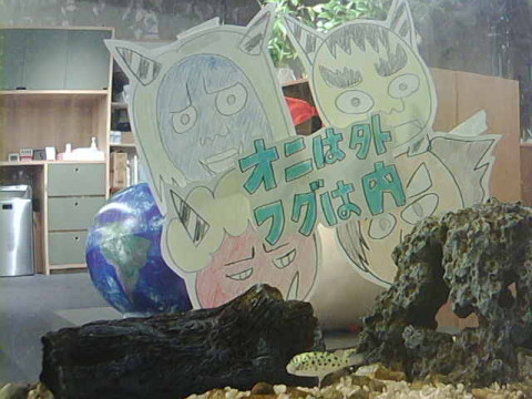 せつぶん。と、歯。 ーーーーーーーーーーーーー こんにちは! 今日は節分ですね。 人間界、何だか大変な毎日です。 フグさんも体に気を付けて元気でいて下さいね。 フグさんと人間の皆様に福が訪れますように。 皆、体に気を付けて乗り切ろう! ハンドルネーム はなーーーーーーーーーーーーー こんにちは! なんとわたくし、オニさんを見逃してしまいました。 たくさんご投稿いただきありがとうございます。 はなさん、ありがとうございます。 そろそろ、福、来てくれてもいいと思うんだけどな。 さて、フグさんですが、どうもお世話をするうえで大きな悩みがありまして。 歯が、伸び過ぎな気がするんですよね。 ごはんの食べかすを、前歯にはさんだままのフグさんが目撃されています。 こないだ見つけたときは、ちょちょっと引っこ抜いてあげたのですが、もしかしてこれは「歯切り」というやつをやらねばならないということなのか。 (こわいなぁ) 2022/02/03 19:42 |
