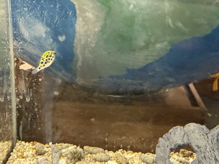 今、水槽にいらっしゃるフグさんはこの状態が初体験でして、いくぶん落ち着きがなくなっています...