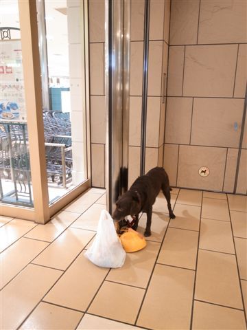 これは、でぱーとの食品売り場の入り口につながれてばあやを待っている、はなちゃんです。
