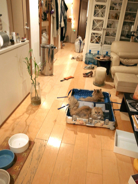 ばあやが、おとまりでおでかけするときしかくい箱みたいなやつを、開けてなかにお洋服とかいろいろ詰め込んでいます。