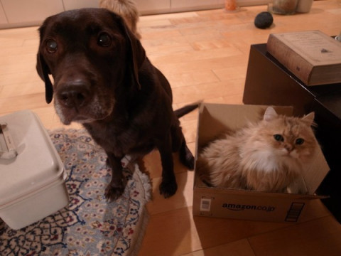 みんちゃんが、箱に入ったので、記念撮影をしました。