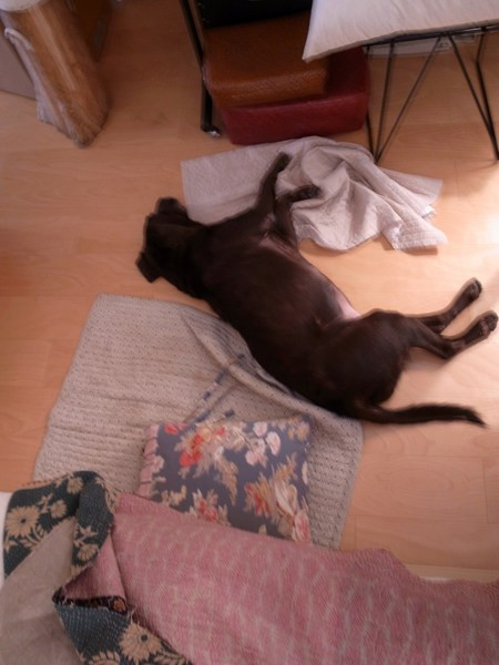 はなちゃんはかわいそうないぬなのでこんなうすっぺらいせんべいみたいなふとんでねているんですよ。