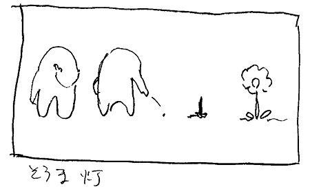 なんか(描く)こんな感じで、鼻をほじってたら死んじゃって、埋められたとこからお花が咲いてきて。