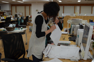 ゲラを切る。 (それはきのうのことじゃった) 本を作っているときに、時折、8ページぶんのデータがベローンとでっかくプリントされた物体が印刷会社から送られてきます。 これがいわゆる試し刷り。 ゲラと申します。 (詳しくは、wikiをどうぞ。) さて、このゲラ。 巨大なプリントアウトでございますのでね、扱うのがなかなかに大変です。 折ってあったり、切ってあったり刷るものを印刷会社さんがいれてくれることもありますが、部数がたりなければ切るわけですね。 たいていは、アルバイトの方々に切る&折るをお願いすることになるわけです。 ありがとう、順平くん、まりさちゃん。 ところで、順平くんは、ぐっさんからもカッティング仕事を頼まれています。 どちらを先にするかで悩んでいるようですが、まあ、ぐっさんのを先にやりたまえよ。 ゲラは、2部必要だけど1部は、土曜日までにあればいいのだ。 2012/03/30 14:57 |