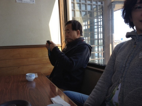柏〜柏〜。 こちら、少人数棚卸・柏チームです。 朝、みんなの乗るバスを通り越して、 天気もよくって、ドライブ日和。 「オトヤマイクロバスだいじょうぶかねえ」 などとおしゃべりして、事故渋滞に巻き込まれ、ものすごく遅刻し、午前中の作業をしたら、アドレスさんが先に進めてくださっていたので、スムーズに終わってしまいました! そして、え、もう、お昼ですか! たいして働いていないままに、お昼ごはんになってしまいました。 ごはんを待っているあいだ、めがねをくわえるカサイです。 (おなかがへっているわけではなくて、 彼の癖です。 これとかね) 2012/03/29 14:24 |