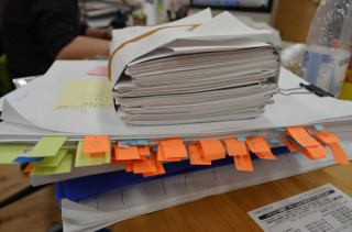 明日は‥‥。 「製作中」を業務連絡に使うのです。 こちら、製作中でもありますがまごうことなき 「業務連絡」です。 さて、トゥモローは、 「夜は、待っている。」のいろいろな戻しや小さいものの入稿です。 (本文、カバーを戻しまして、 帯、オマケ、スリップ、 お手紙を入稿いたします。) ゲラは、きのう順平くんにきってもらいました。 じゃ〜ん! 赤字は、校正の会社からと、いま休暇中のリカすからの置土産、そして、新入社員のタナカくんからのものがこのくらい。 さて、どのくらい時間がかかるかなあ‥‥。 2012/03/30 15:05 |