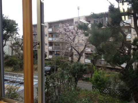 食べている途中で、窓にかかっていたブラインドがオープンされました。