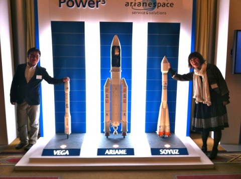 宇宙パーティー こんにちは、宇宙チームです。 仏領ギアナからロケット発射生中継! でお世話になった、ロケット発射の会社アリアンスペース社の方から 「パーティーがあるので、来ませんか?」とお誘いして頂きまして、 の3人でおじゃましてきました。 日頃、パーティーと縁のない我々が、そわそわしながら入った会場には、仏領ギアナで、 マリオさん 「やぁやぁ、ひさしぶり!」 もう一人のヒゲ(おっくんのこと)は どこだい?」と。(写真1枚目) マリオさん 「ワオ!」 ちょっとぶらぶらしていたら、宇宙チームが何か困ったら相談している、五百木さんが!(写真3枚目) 五百木さんは、日本の衛星を広げるために、世界中を飛び回っているそうで、今年、すでに地球を2周したそうです。 五百木さん 「飛行機はね、 一回乗り継ぎすると、 世界中のどこでも だいたい行けるってわかったよ。」と。 いった人しか言えない言葉だ、、。 五百木さん 「宇宙のことで なにか困ったことがあれば 何でもきいてくださいねー」 と、さっそうと去っていかれました。 パーティーってなんだかすごいなぁ! いろんな人に会えるんですね。 2012/04/04 21:03 |