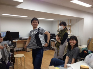 レロレロ。 今日はお花見的に、会社の大ホールで歓迎送別会でした。 会が終わって、ほろよい気分。 残っているみんなが、異様に盛り上がっていました。 むしろ、悲鳴にも似た声が。 ん? なんだろう?? と思ったら、 「ぎゃー! こわー!」 「ちがうーちがいますってば」 「やだー」 「ちがう、ローロ! ローロ!」 なんのこっちゃ? と思っていたら、胸に「レロレロ」と書いているじゃありませんか。 それにみんなが 「いやだ〜」って反応していたのでした。 たしかに「レロレロ」やわ。 いやだわ〜。 言い出しっぺは、 実はふたりは同じ名字。 斉藤先輩は、斉藤後輩にきびしいのでした。 もう、来週からあだ名は 「レロレロ」だね、斉藤後輩。 最後の写真は、今日のゲームの景品で 肩からかけると、なんとも不思議だまし絵のようにナイスバディになっちゃうというもの。 ちょうど似たようなボーダーを着ていたレロレロなのでした。 これからも、レロレロをよろしくお願いしまーす! 2012/04/06 22:39 |