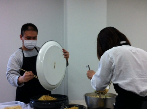 がそば焼き当番らしく、みんなのそばをいったん焼いてご提供。