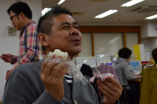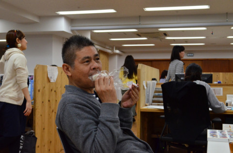 我らがクフウ王。 今日の給食には、 「おにぎり・Without・ノリ」もでました。 このおにぎりをとっておいた王様。 おとなりのコンビニに行って、小袋いりの梅干しをかってきて、おにぎりをたべています。 「みんなは、どうしたの? とっておいたおにぎり。」 ははー。王様。 しろめしのままいただきました。 「あ、そうなの。 僕は昆布にするか、 梅干しにするか悩んだけどね。」 ははー。王様。 さすがの工夫であります。 弊社の社長は、 「工夫をしてよりおいしく」ということに情熱をもっています。かなりの。 ゆえに、乗組員は彼のことを 「クフウ王」と呼んでいるのです。 今後もまたここでクフウ王の工夫を紹介する機会があらんことを。 2012/04/10 18:38 |