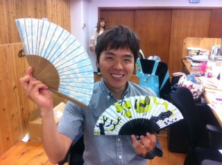 扇子の社販が届いたよ。 みなさまのお手元にもそろそろ扇子が届いている頃かと思います。 ほぼ日の社員にも注文していた扇子が本日到着しました! さっそく扇子をパタパタとあおぐ 涼しいねー。 荒井良二さんの扇子が似合ってるねー。 「花子」という名前の姪御さんがいて、今年進学した花ちゃんへのプレゼントだそうです。 クロスステップは男性も女性にもしっくりくるすごくいいデザインなのです。 「クロスステップ」も「私の庭」もどんな洋服にもぴったりあって使いやすいなと思います。 ミナペルホネンの扇子を一種類づつ。 姉妹で「おそろい」感のある扇子を使うのも素敵ですねー。 新人 「最大瞬間風速」を。 お父様へのプレゼント用だそうです。 親孝行、素晴らしい。 私、目先の母の日ばかり気にしててすっっかり父の日のことを忘れてました。 今週末の母の日が過ぎたら、約一ヶ月後は父の日ですね。 父に何をあげていいのか思いつかなくて毎年日本酒にしていました。 (特に趣味もない父なのです。。) たまには扇子でも、と思うのですが自分の担当している商品を渡すのも超照れくさいのでやっぱり今年もお酒にすると思います。 たぶん。 さりげなく扇子も一緒にあげるかもです。 (みなさんは、よかったら扇子をご検討くださいねー) 2012/05/11 18:11 |