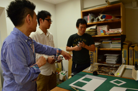 明日から始まります。 ああ、迫ってきたよ。 迫ってきた。 金環日食が迫ってきた。 「金環日食すべりこみ講座。」では国立天文台の小野智子さんがベイリービーズについて解説中。 当日は、総勢27名(ほか追加あるかも?)の日食観測隊たちが、全国にから「テキスト中継」でそのもようをお伝えいたします。 18日の明日は、スガノさんが、鹿児島の竹島に出発するので、テキスト中継開始です。 ただいま、山口工務店は、みんなのiPhoneや、望遠レンズにつける 「日食観測用のスゴイフィルム」を加工中。 社長もその様子を見に来ましたよ。 ああ、もりあがってきた。 2012/05/17 16:24 |