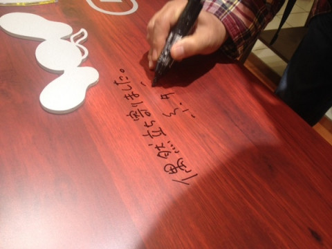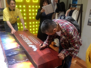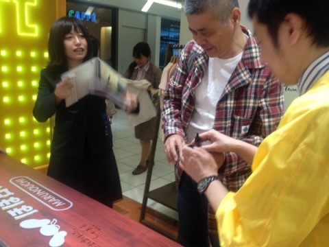 嵐のようにやってきて、嵐のようにサインをし、嵐のように、店内をぐるぐる見ています。
