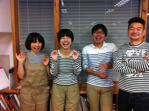 シマシマフライデー 我社は、ボーダー率がそもそも高いのですが、本日もそろいましたので、記念写真を撮ってみました。 イェーイ。 1枚目の写真は わざわざブラインドの前に立ってきもちわるくしようという演出です。 2枚目の写真は 「新進気鋭のバンド」というテーマでしたが、個人的には、その写真を撮った直後に 「解散したバンドのメンバーの それぞれの行末」 みたいになっている3枚目が好きです。 今日は金曜日ですからね、シマシマで帰りにどっか寄りましょうかねー。 2012/06/22 18:20 |