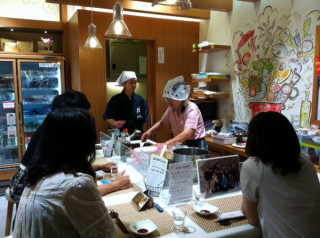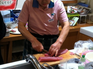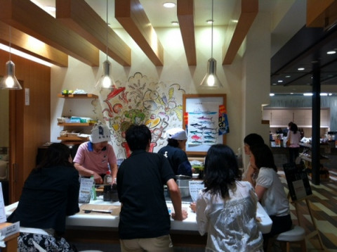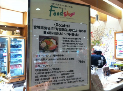 二子玉川で海鮮丼。 お昼休みをかねて、 二子玉川ライズで催事を開催中の 斉吉商店さんを訪ねてきました。 わたしたちが到着した14時過ぎには限定30食の海鮮丼ランチはすでに完売!ガァアアアア〜〜〜〜ン! 同じ場所で15時からは、 斉吉商店の貞子さんによる 「斉吉商店ばっぱの台所」というワークショップがはじまりました。 びんちょうマグロを使った生ふりかけや 金のさんまの「たれ」を使ったもう一品を貞子さんが軽快なトークとともにおしえてくださるんですって。 そ、そのいま切られているマグロ、とーーーってもおいしそうっ! ワークショップは、明日で終了となりますが斉吉商店さんは、7月4日までランチと販売の催事をしてます。 お近くのみなさん、マグロ好きのみなさん、 旅するキッチン「オカッテ」(Occate)にぜひっ! 2012/06/29 18:11 |