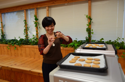 スマイルビスケット教室! さてさて、 「スマイルビスケット教室」がいよいよ日曜日! 明日の13時ぐらいから、なかしましほさんがUST中継に登場しますよ。 「生地がまとまらないなあ」 という、おやつのなかまのみなさん、ぜひぜひ、ご参加ください。 当日は、中継をみながらなかしまさんと一緒にビスケットを焼いてみる、ということを計画していますので、どうぞ、それまでに材料と道具をご準備いただいて、みんなでおやつを食べましょう! わたしたちも、会場をセッティングし、オーブンの試し焼きを山下さんと一緒にふたたびしてみました。 いいにおいがオフィスに漂ってきたら、つられてやってきた人もいましたよ。 2012/06/30 15:10 |