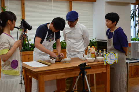 終了しました。 なかしましほさんの 「スマイルビスケット教室」 無事に終了いたしました。 おかしをつくったことが無い、という生徒役の福田利之さんの粉も見事にまとまりました。 とにかく、まずはレシピに書いてあることを読んでやってみる! ということ、そして、たのしく! の「おやつ精神」ですね。 ごらんいただいたみなさまありがとうございます。 ひきつづき 「おやつシステム」は稼働しておりますので、 「スマイルビスケット」をつくったらハッシュタグ#LR1をつけてツイートしてくださいね! 画像をシェアしましょ〜〜! 2012/07/01 16:56 |