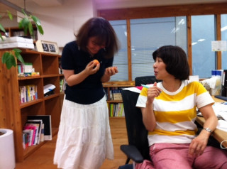 あんずでチーズ 会社に戻ってきた 「お、あんずだ」と思って、写真を撮ろうとカメラを向けました。 と。 なぜか急にコウノが、 「いやー! やめて! 盗撮! それ盗撮!」 と叫び出しました。 そして左右に大きく揺れ続けあえてブレ写真になろうと試みる ぶんぶん。ぶんぶん。 最終的にはポーズをとってくれましたが、なぜ、あそこまでいやがられたのか、まったくわかりません。 とりあえず、あんずは、すごくおいしかったので、きっと良いことになると思っています。 2012/07/02 18:08 |