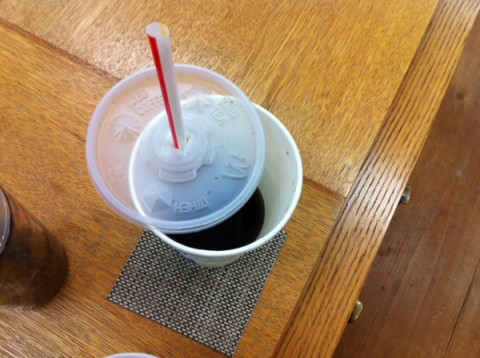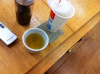 誰かが飲んでいた、簡さんのお茶とコーラのセット。