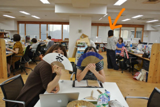 ミーティング前の、ただのおしゃべり中です。