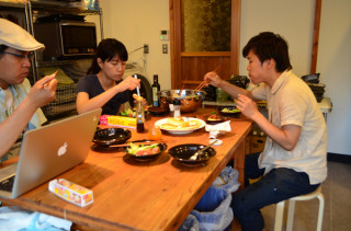 パンケーキ、おいし〜い! 「ちいさなレシピを1ダース。」の10個目のレシピは、パンケーキ! 「そうきたか!」を連発するなかしまさん。 今回もですね。 そして、なんとパンケーキだけどイースト菌をつかうのです。 昨日、おやつクラブでは、東京都に降り注ぎました太陽光を存分につかいまして、生地をぷっくぷくにしました。 そして、朝ごはん、昼ごはんともに、パンケーキをつくって食べる、というようなパンケーキ三昧です。 バター+メープルシロップ。 バター+あんずジャム。 などなど、たのしくいただきました。 サラダをレロレロ( (あ、今日はコーヒー販売中です) キッチンは(雑然としてるけど!)、ちょっとしたカフェでありました。 きのうは、暑かったんだけどね〜。 今日は、日光浴で発酵しないから、お風呂のふたの上? じぶんの腹の上? 2012/07/20 11:17 |