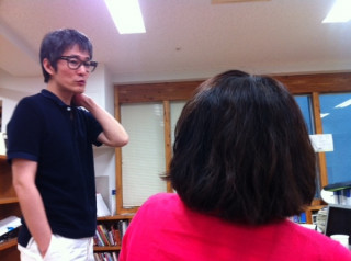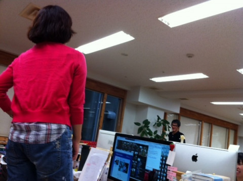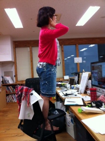椅子の上に立つおんな 仕事をしていたら、隣の席の 「ハリさんあのなー! アレってアレでいいんよな?」 席を移動せず、遠い島のハリさんとそのまま打ち合わせをしてしまおうという算段のようです。 「○○××○○○○×○○×?」 「○×! ×○○×××?」 「○×○×! ○○○○!!」 「○××! ×○×!! ○×!○! あ、いい! 来んでいい!」 「○○○」 「×○×!」 「‥近くで喋ったほうが早いわ」 「あぁ、きちゃった‥‥」 良いアイデアだと思いましたが、残念です。 またのトライを、期待します。 2012/07/20 14:32 |