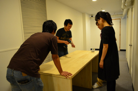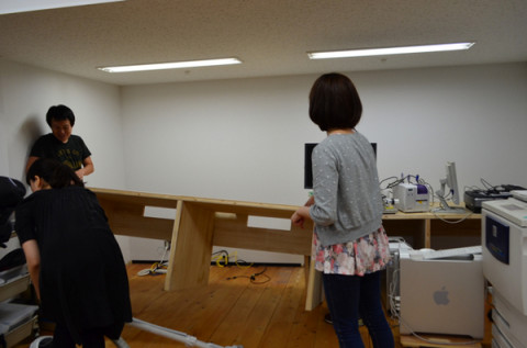机がたりなくなっちゃったので、ぐっさんのお友達の大工さんに机をつくってもらったのでした。