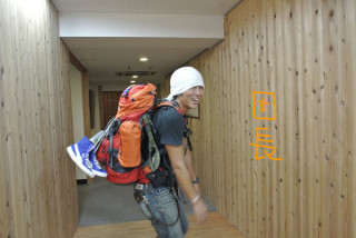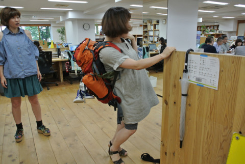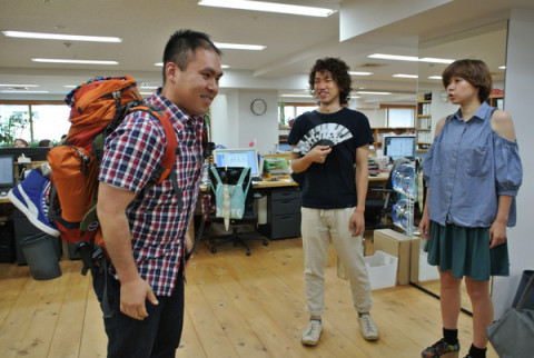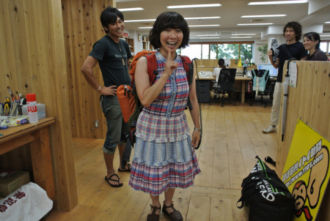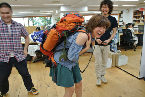 1ヶ月分の荷物 先週のことなんですけれども、1ヶ月以上にわたる日本横断縦断ひとり旅をした スコップ団団長の平了さんが北海道から仙台へ戻る途中にわれらが「ほぼ日」に 寄ってくださったときのこと。 団長の1ヶ月の旅の友だったリュックをみんなでかわるがわる背負わせてもらったんですよ。 見かけよりも重くて驚きました! 旅は石垣島からはじまり、北海道の宗谷岬に至るまで。 団長はほぼヒッチハイクで移動しました。 団長曰く、 「旅は、かしこくなければできない」。 それは、あいさつひとつとっても、度胸の出すところについても、ちゃんと頭と心を働かさなければできないのだそうです。 いつか、「ほぼ日」でそんなことを機会があれば教えてください。 平了さんの旅の記録は こちらでごらんくださいね。 最後の写真は、仙台へるんるんで戻る団長です。 2012/07/30 13:47 |