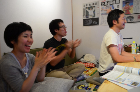 今日も1000行オーバー! 昨日は、メダルラッシュ。 「カフェ五輪」でも、松本薫さんの金メダルの瞬間をみんなで祝いましたよ。 もちろん、金メダルの瞬間のメールの量といったら、それはそれは大変なものでした。 そんなわけで、さて、さきほど、 「観たぞ、ロンドンオリンピック!」を更新しおわりました。 というのも、本日は、テキストが五月雨式に届きページが完成していく五月雨方式だったためでございます。 (ただいまは、完パケがあがっています。) ぐっさんが、 「五月雨方式」のときに表示しておく画像もつくってくれました。 次回からは、ページの最後にこれがでていたら、時間をおいてリロードすれば、ページが更に長くなるということです。 そして、FaceBookのほうでは、山口、モギの勝手な振る舞いに拍車がかかっております。 こちらも、どうぞよろしく。 あ、そうそう、ちなみに永田は柔道で日本選手がでてくると、おもわず正座をしてしまうようです。 2012/07/31 13:19 |