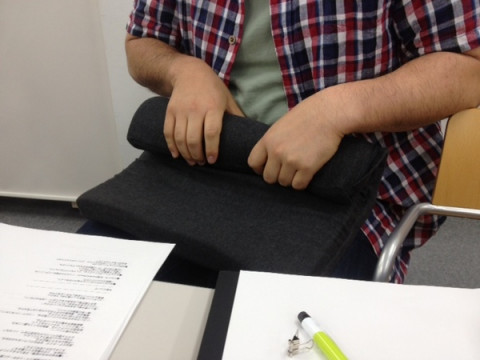 座布団を巻き巻きして、なんかそばを打ってるみたいなひととか、ひとの手帳についてるどせいさんを、無言でにぎにぎしているひととか。