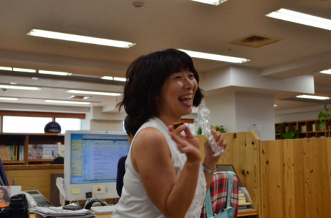 「恋歌くちずさみ委員会」のCD お盆休み中に 「恋歌くちずさみの広場 」で 「恋歌くちずさみ委員会」のCDが発売されるとういうおしらせをしました。 そして、みなさんにそのCDの 「曲順」を考えてくださいというお願いをしましたところ、たくさんのメールいただきました。 ありがとうございます! 自分で曲を編集してテープを作っていた世代にはもう、たまらんものがある(らしい)です。 今日は、委員会のほうで、みなさんからいただいた曲順をみながら、 「決定」をしたいと思います。 委員のみんさん、もりあがっておられましてね。 収録曲をどんどん歌います。 スガノさんは踊りもついています。 ナイス・ターン! (彼女「ターン」に引き続き、 「体操」のコンテンツを スタートしたばかりです。) そして、JP(最近じゅんぺいのことは、このように呼ぶらしい。)がパネルをつくってくれました。 彼いわく 「大喜利でもするんっすか?」 ちがいます。 けど、「恋歌うらない」はできます。 私、現役ですからつつしんで。 うりゃ! 「木根川橋」。 「同窓会だよ! 同窓会!」 あんま、ないんですよ。 自分ベッドタウンの学校で、関係がうっすーい感じで‥‥。 「じゃあ、負けておく! 同級生、同級生!」 もう、彼らもいい年のおっさんで、かなり売れてしまっているし‥‥。 ちなみに山下さんは 「かもめはかもめ」 でした。 ‥‥それはさておき、だ。 「恋歌、くちずさみながら。」というタイトルになった書籍のほうも鋭意製作中です。 現在は、掲載をさせていただく予定の投稿者のかたに私からメールをさしあげているところです。 ですが、お返事をいただけてない方がおられるのです。 投稿した覚えのある方は、しばらくチェックしてないメールアドレスなどをご確認いただいてもよろしいでしょうか〜〜??? なにとぞ、よろしくおねがいいたします〜。 2012/08/23 12:47 |