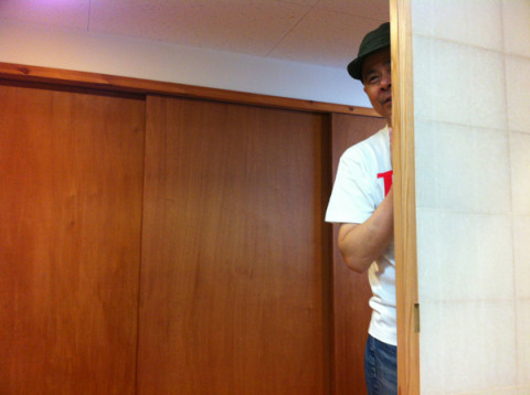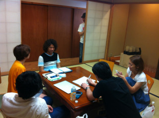 和室で会議をしていましたら、扉の向こうにそっと見守る影がありました。