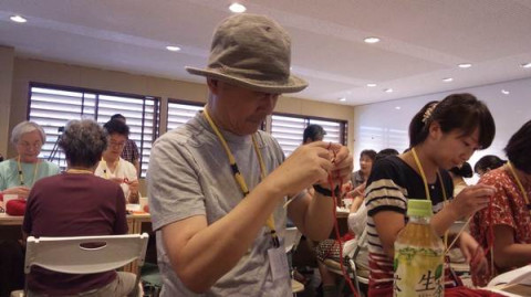 三國先生のワークショップ ただいま、気仙沼のほぼ日では、三國万里子さんの編み物ワークショップがはじまりました! 気仙沼のほぼ日事務所に、たくさんのみなさんがいらっしゃってくださいました。 みなさんが編んでいるのは、かわいいミトン「IPPO」。 三國さんが、このワークショップのためにデザインしてくださったものです。 初心者の方でも編みやすいデザインで、初心者チームの机にはイトイもおります。 もくもくと、編む音笑いながら、編む音が聞こえています。 2012/08/25 13:54 |