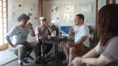 ほぼ日メンバーも! こちら、気仙沼八日町のマルト齊藤茶舗です。 小さいことばの原画展。 の展示に、 と来ています! リンダさんこと、お茶屋のお母さんがお出迎えです。 津波で一階部分がまるまる浸水した齊藤茶舗ですが、家族の手で、地道に片付けをして、今はこんなに、素敵な原画を展示できるまでになりました。 お茶屋の中は、涼しくて、あんみつセットを頂きながら、ゆっくりできます。 ゆっくりしてたら、磯屋水産さんの竜司さん、コヤマ菓子店の裕隆さん、港のスズメを更新しているkazueさんが、茶舗にいらっしゃって、いろんなお話をしています。 会期は9/9(日)までです。 ぜひお越しください! 2012/08/26 16:56 |