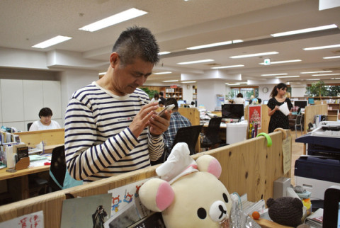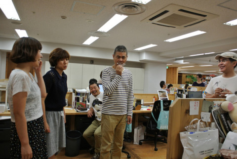 今日の社長 打ち合わせから席に戻ってみんなでわいわい話をしていると 「何をたのしそうに話してるんだ!!」 と一喝していきました。 (ひとコマ目) そして、携帯電話で何らかのコメントを「立ちツイート」し (ふたコマ目) 遠くでカバンをいくつもさげており (3コマ目) 乗組員が笑っていました。 (4コマ目、5コマ目) ちなみに、3コマ目の写真でイトイが持っているカバンのなかに私が今日勤務時間中に‥‥つまり、さぼり、購入してきたものが含まれております。 早く返してほしいです。 いそがしくてもたのしい社長がいて毎日通うことができるのはうれしいなあ、と思いましたです。 2012/09/05 20:06 |
