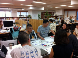 定例であるまじめな内容のミーティングですが、なんだか歌を口ずさんだりしながら、笑いがたえない、盛り上がっています。