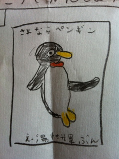 かわい! 幼稚園の先生をやっている友だちからかわいいメールが届いたので、載せちゃいますー。 -----------------幼稚園に置いてあった 「さよならペンギン」の大ファンだった卒園児に先日お誕生日だったので、 「さよならペンギン」をあげましたー。 すごく喜んでて、やっぱり面白い絵本です。 ってお手紙もらったよ! ----------------- かわいいーー! じょうずー! え・湯村輝 ぶん 中途半端!かわいいです。 そんなお子さまにも人気な絵本 「さよならペンギン」。 いろいろなグッズがあるんですよー。 あ、そういえばiPhone5のケースも 準備中みたいですね。 たのしみだぁ。 2012/09/26 21:15 |