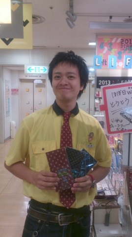 ロフトさんからも(3) 本日より、 ほぼ日手帳WEEKSの発売がはじまった 全国のロフトから、ぞくぞくと写真が届いております。 昨日、店頭に並べるときにみなさんより、一足お先に、実物を手にとった各店舗の担当者からお気に入りの柄とその理由など自由にコメントをいただきました。 手帳選びのご参考に! _________________ 【吉祥寺ロフト 桐生美怜さん】 ・ピンドット ・タイ&チーフシリーズは ネクタイのツルツルとした手触りが心地よく、 その中でもピンドットは どんな服や鞄にも合わせやすいので オススメです。 _________________ 【渋谷ロフト 望月敬介さん】 ・ペイズリー ・赤でも、ペイズリー柄が入ると とたんに渋くなって 男性でも持ちやすくなります。 ビジネス小物に一味加えたい方にオススメ! _________________ 【仙台ロフト 武田さん】 ・タイ&チーフピン・ドット ・ドットでも大人っぽく使えるのと、 本物のネクタイ生地を 使っているので触り心地も良い所が お気に入りです。 _________________ 【千葉ロフト 増田瞳さん】 「ほぼ日手帳WEEKSは 薄くて軽いので 必要な時にすぐに取り出せて 重宝します!」 _________________ 【神戸ロフト 田嶋恒夫さん】 ・おすすめのWEEKSはネクタイ柄三色。 ・スーツのネクタイを毎日選ぶように、 どのWEEKSを持っていこうか 迷いながら決める感じが楽しいです。 ファッションアイテムとして、 胸ポケットから、 ちらちら覗かせたいですね。 _________________ ロフトの店員さんからのおすすめコメントはひとまず、ここまで〜。 また、店頭の様子が到着したら、随時、お知らせしますね。 2012/10/01 14:52 |