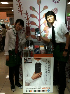 東急ハンズさんからも。 10月1日の「ほぼ日手帳WEEKS」 発売当日の各店舗紹介、ラストは、東急ハンズです。 「東急ハンズには、ほぼ日手帳ない?」 というツイートやメールをたまにお見かけするのですが 東急ハンズさんでは 「ほぼ日手帳WEEKS」のお取り扱いがありますよ! そしてそれは、本日10月1日からスタートです! たいへんお待たせいたしました。 ___________________ 【東急ハンズ心斎橋店 山崎さん】 うちのフレッシュな新人にネクタイをしてもらいました。 新人2人は、ペイズリーとストライプがいい! とのことです。 【東急ハンズあべのキューズモール店 横枕さん】 自分で使うんだったら、やっぱりシンプルな黒ですかね〜。 使いやすいサイズ、レイアウトの上にこんなに柄があったら迷ってしまいます‥‥。 【東急ハンズ大宮店 奥山さん・根本さん】 発売前から、事前のお問い合わせも多くいただきました。 きっとたくさん売れると思います。 写真のふたりは、ネクタイとお揃いの柄が気に入ったようです。 ___________________ たくさんの店舗からメールを頂きました。 ほぼ日手帳に関わるすべてのお店のスタッフのみなさま、ありがとうございましたーー! 実物を手にとって見たいというかたは、ぜひ近くの店舗に行ってみてください。 また、店頭からの写真が到着したらこちらのコーナーでご紹介しますね。 2012/10/01 19:15 |