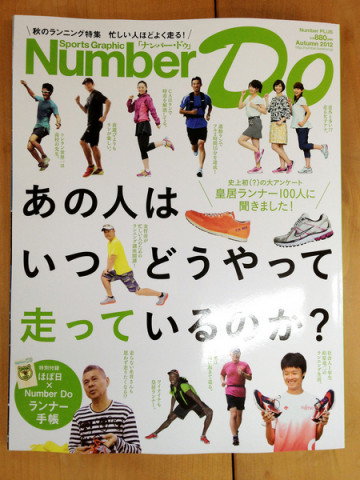 ラン・ラン・ラン! 明日、10月4日(木)といえば、 「ほぼ日手帳 WEB SHOP」の 「渋谷ヒカリエ出張所」のオープンです! 社内もなんだか、10月の手帳祭り!に、みんな、ワクワク、そわそわなんですが、そんな中、これを忘れてはいけません。 「ほぼ日」のまさかの体育系コラボ企画、スポーツ雑誌『Number DO』と 「ほぼ日」がいっしょに作った特別付録、 「ランナー手帳」が付いた『Number DO』の 最新号の発売日でもあります! 1枚めの写真を見ておわかりのように、ほぼ日手帳(オリジナル)の外側ポケットにぴったりのサイズ、どこへでも持ち運べる便利な小冊子です。 付録は、袋とじになっているので、立ち読みすることはできません。 でも、ちょこっとお伝えすると、なんと、ランナー村上春樹さんの名言も載っていたりするんですよ。 そして、本誌には、走らない人 「箱根駅伝」の山の神のインタビューや、走る女子アナの記事もあったり、もりだくさん。 読んでその気になってしまった、まったく初心者なんだけど、自分も走ってみたいなあ、でも、走れるかなあ、なんて心配している人、大丈夫です。 ココロの陸上部員として、ともに走ろうではありませんか。 もちろん、ランナー手帳は必須です! ※5日(金)更新の「ほぼ日中年陸上部」で、プチ・イベントのおしらせがあります。 よろしければ、見てみてくださいね。 2012/10/03 21:52 |