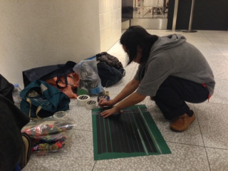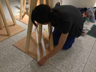 早速、持ってきた小道具に大胆な装飾がはじまりましたよ。