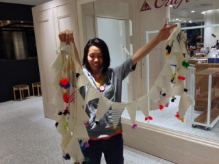 手帳の色を意識した、ボンボンがついた旗ですよ。