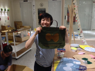 ちょうちょレイアウトをするさくら。